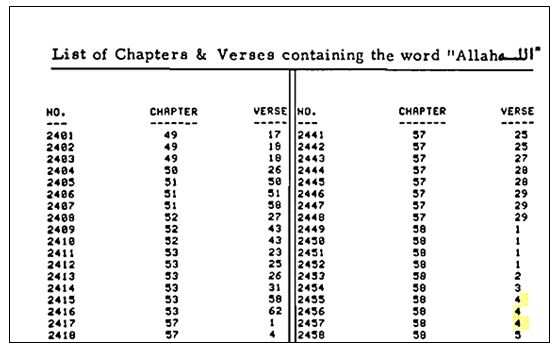 Figure 3. An image from Rashad Khalifa's book (1982) on the computational method for counting Allah in Surah al-Mujādalah.