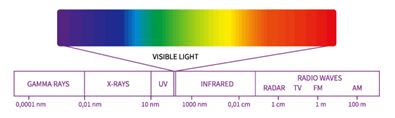 Electricity and magnetism were initially known as two independent branches. In 1820, Hans Christian Orsted realized that an electric current in a conductive medium can create a magnetic field, so the topic of electromagnetism was raised as a branch of physics. The theory of electromagnetism was codified by the valuable work of James Clerk Maxwell, and the nature of visible light was determined and known as electromagnetic waves. The human eye has the ability to detect light as a combination of the red to violet light spectrum, and no more. The interesting point is that until then, humans were only able to detect light waves in the wavelength range of 700 (red light) to 300 nm (violet light). It means that other electromagnetic waves did not exist for humans, simply because they could not be detected by him. However, with the passage of time and the development of science and the advancement of tools, other waves were discovered in the electromagnetic spectrum. In the field of waves with longer wavelengths than visible light, William Herschel discovered infrared waves in the wavelength range of 700 nanometers to one mm. Heinrich Hertz discovered radio waves, whose entire spectral range was later known from one millimeter to several centimeters, meters, and kilometers. In the shorter wavelength range, ultraviolet waves were discovered by Johann Wilhelm Ritter, X-waves by Wilhelm Conrad Roentgen, and gamma waves by Paul Willard in the wavelength range of 300 nanometers to femtometers (Jackson 1998) (figure 1).